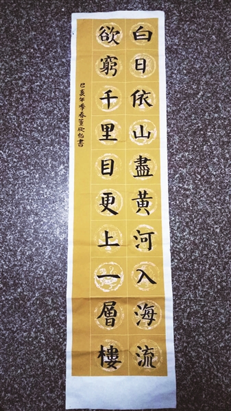 董欣怡小记者的这幅楷书作品结构较为稳定,主体部分较为统一,用笔稍嫌稚嫩,落款部分书写得过于小和拥挤,导致整个章法不和谐,可以适当拉开距离和放大书写。希望平时加强经典法帖的深入临摹,必能取得长足进步。