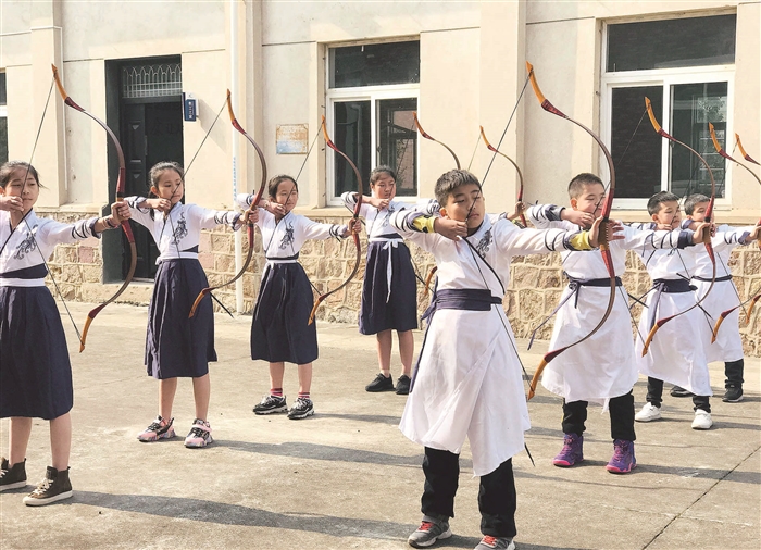 图为学校射箭队队员在进行日常训练。记者 王红雨 通讯员 马金山