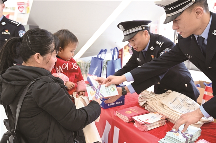 本报讯(记者 柳家欢 通讯员 奕超超 叶静波)昨天是全国第34个“110宣传日”,区公安分局在万达广场内开展了主题为“不忘初心110,共建共治享安宁”的宣传活动,通过悬挂横幅标语、设置宣传展板、发放宣传手册、解答群众咨询等方式,使广大群众更加深入了解、理解和支持“110”。 据悉,去年“110”共接警21.2万余起,其中,有效警情8.7万余起。今年,区公安分局将不定期开展各类宣传服务活动,让群众进一步了解“110”工作的职责清单和权力边界,积极推动建立非警务类求助有效分流机制,不断增强人民群众安全感、获得感、满意度。 图为宣传活动现场。