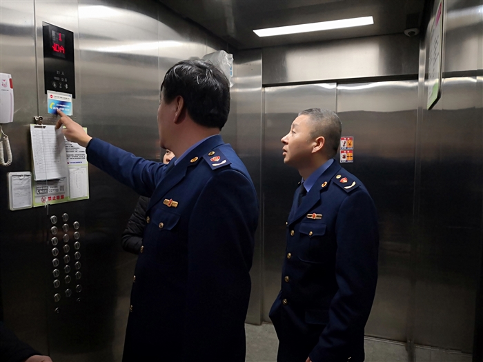 区市场监管局干部检查电梯安全