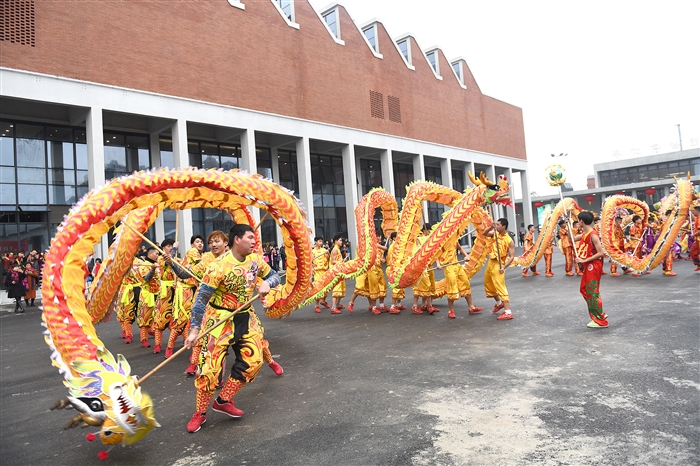 本报讯(记者 张夏珍)昨天,奉化城市文化中心启用仪式暨2020奉化布龙“走乡串村闹新春”开幕式举行。 奉化城市文化中心是我区有史以来投资额度最高、建筑体量最大的文化类公建项目,内有博物馆、图书馆、文化馆、非遗馆、书城、艺术培训楼等多个功能单体,是集文化展示、交流、休闲、消费等于一体的综合性文化场所。 城市文化中心启用后,各展馆将分别开展送春联、制作灯笼、阅读分享等活动,有兴趣的市民可关注各展馆的微信公众号。1月27日(正月初三)至1月30日(正月初六),城市文化中心新春嘉年华将带来宁波走书、民谣、街头艺术等表演和文化创意集市。 今年,“奉化布龙走乡串村闹新春”活动共安排了10余条布龙到全区60个村(社区)进行表演,为百姓带去新春的问候。 图为布龙表演。 记者 王红雨
