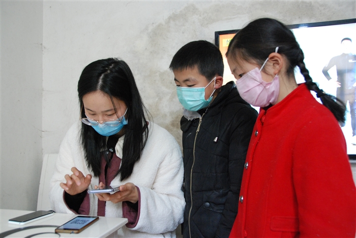 受疫情影响,我区中小学推迟开学时间,改为网络平台线上辅导。贺同学和弟弟因家庭经济困难,没有上网学习的设备。教师沈莉洁了解情况后,和学校领导进行沟通,送去了2台闲置的智能手机,又自费200多元办理宽带业务,确保姐弟俩线上辅导不落下。图为沈莉洁指导姐弟俩上网课。