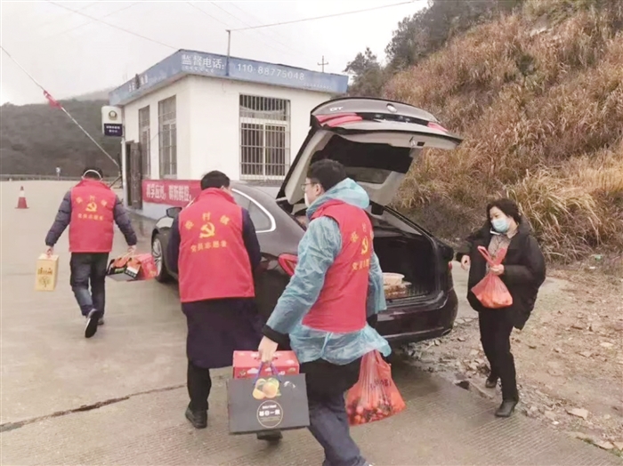 图为岭下村防疫卡点值守人员领取爱心水果大礼包。 通讯员 陈琼 陈玮