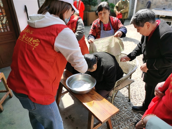 为老人准备日用品、零食、水果,提供理发、洗头、剪指甲等贴心服务……日前,萧王庙街道桃源文化志愿队联合锋之社志愿团队,在街道干部邬滨旭和志愿者孙贤娣的带领下,一行8人来到青云村敬老院开展礼敬老人服务。