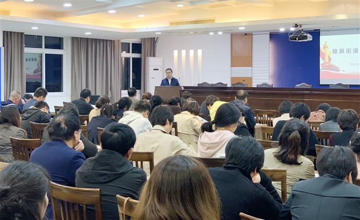 本报讯(通讯员 葛梦园)“在这场联防联控的战役中,见证了众多社区工作者负重担当,冲在一线,放弃了春节、双休日、元宵节,放弃了自己的小家责任,用忘我的精神筑起了一道大家的‘守护墙’。”4月21日晚,锦屏街道“周二夜学”第七课举行,街道组织办徐青上台作题为《“疫”往情深——记录疫情之下的社区工作者》的微型党课。 据了解,为巩固深化“不忘初心、牢记使命”主题教育成果,深入开展“大学习大调研大抓落实”活动,锦屏街道自3月10日开启“周二夜学”模式,营造浓厚学习氛围,激发全体机关人员学习兴趣,着力提升机关干部政治理论水平、思想道德素养,提高狠抓工作落实的能力。 当晚,徐青以图文和微视频的形式讲述了在新冠肺炎疫情防控阻击战中,街道众多社区工作者全力以赴、不怕繁难,奋战在疫情防控第一线的动人事迹。为守住外防输入、内防扩散的防线,他们强化社区网格化管理,实施地毯式排查,严格落实早发现、早报告、早隔离、早治疗,叮嘱督促社区居民多通风、戴口罩、勤洗手、不聚集;做好社区封闭管理,加强疫情监测,协助落实“四类人员”分类管理,测体温、做消杀、清垃圾、搞卫生;安排监督员管理居家医学观察人员,做好思想工作和心理疏导,做好居民日常生活保障服务,解决居民各种具体细微的生活难题等。 该街道切实响应市、区两级关于建立“周二夜学”制度的通知精神,建立常态化“周二夜学”制度,力促“大学习大调研大抓落实”活动深入开展。采用定期集中学、轮流展示学、主题论坛学、个人自觉学等多种形式,既“向外学”,邀请专家学者举办讲座,学习党建、城市建设、数字经济、创业创新、生态文明建设、文化历史、乡村振兴等理论和实践知识,又“向内学”,学习先进典型、身边榜样,提升机关全体干部职工的能力水平,努力培养一支想干事、能干事、会干事的锦屏铁军队伍,为扎实推进现代化健康美丽新城区建设提供强大的思想保障和智力支持。 图为“周二夜学”现场一角。