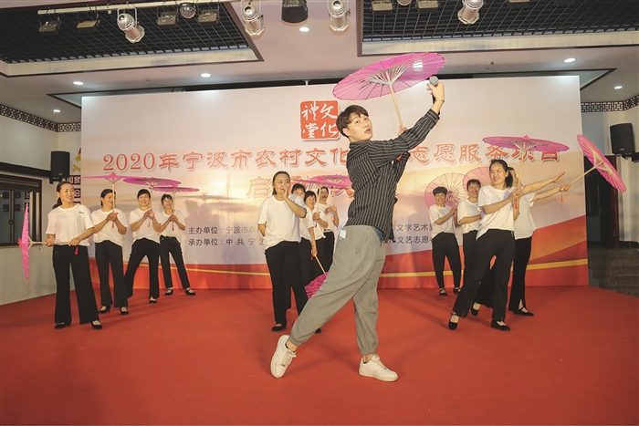 本报讯(记者 王红雨)昨天晚上,全市农村文化礼堂志愿服务项目启动仪式在西坞街道蒋家池头村举行。市委宣传部副部长邓晓东,市文联党组成员、二级巡视员黄旭航,区委常委、宣传部部长邵方毅等出席。 当前,农村文化礼堂已成为乡村文化地标和村民的精神家园,然而多数文化礼堂却面临文化人才缺乏的困境。该项目旨在充分利用好农村文化礼堂这一载体,将志愿者服务活动与文化礼堂建设相结合,充分发挥专业志愿服务队伍作用,让志愿服务广泛参与其中,丰富文化礼堂活动内容、提升农村文化礼堂活动质量,使志愿活动更加贴近群众,更好地服务群众。 据了解,今年计划开展100个文艺志愿服务项目,组织近百名文艺志愿者对全市100个文艺团队(骨干)具有一定水准的农村文化礼堂村,重点进行戏曲、书法、摄影、音乐、舞蹈、曲艺、民间文艺等辅导。 图为文艺志愿者对村舞蹈队进行辅导。