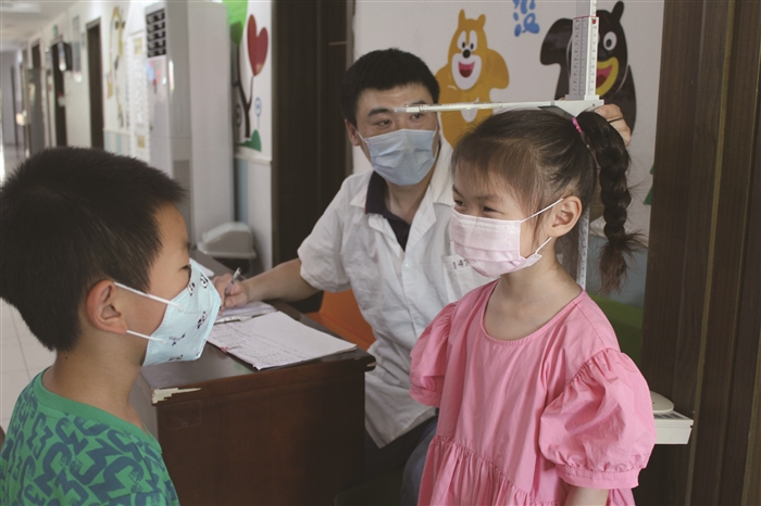 记者 邬雪珂 通讯员 周美珍 儿童的成长,牵动着家长的心。关注儿童健康,促进儿童健康成长,一直是区妇幼保健院儿保科全体医护人员的目标。在这里,开设了儿童生长发育门诊、儿童营养门诊、儿童口腔门诊、儿童高危儿管理门诊等,注重儿童生长发育期的全面健康管理,保障和促进儿童获得生理、心理、社会能力的全面发展和提升。 走进区妇幼保健院儿保科,给人温馨、整洁、舒适的感觉。为了缓解孩子就医的紧张情绪、更好地宣传科普知识,走廊和门诊室内的墙面上贴着充满童趣的卡通壁画,以及各类儿童保健知识宣传海报。院内还特意设置了儿童活动区,五颜六色的玩具和滑梯吸引着前来就诊的儿童,让就诊前的等待不再漫长和枯燥。 根据《国家基本公共卫生服务规范》《宁波市托儿所幼儿园卫生保健工作规范》要求,区妇幼保健院自5月18日起对3至6岁儿童进行一年一次的健康体检。因疫情防控原因,体检采取预约分散检查模式,由家长带孩子来院检查。通过儿童生长发育检查评估、血常规检查、肝功能检查、视力检查和口腔检查等健康体检项目,了解儿童综合发育情况,给出合理的指导意见,对有问题的儿童现场进行相应的健康宣教和治疗指导。如对筛查出龋齿和弱视的儿童,建议及早治疗,尽早改变儿童不良生活习惯;对低体重、生长迟缓、消瘦、肥胖及贫血等营养性疾病,查找原因,及时宣教,指导家长合理喂养,培养儿童良好饮食习惯。通过规范的儿童健康体检,帮助家长和老师对儿童的健康状况及生长发育情况有初步了解,以便日后更好地照顾儿童,也帮助学龄前儿童及早发现疾病,及时治疗,有效保障儿童健康。 长期以来,儿保科致力于打造让家长放心的科室,坚持“早筛查、早发现、早干预”,通过检查,了解儿童身体生长和心理发育的情况,根据儿童年龄特点及个体生长发育状况,制定个性化的保健和干预方案。区妇幼保健院一直坚持为儿童提供全方位、多层次的优质服务,促进儿童生长发育,提高儿童健康水平,使儿童身心得到全面健康发展,助力孩子健康成长。 区妇幼保健院医生给儿童体检