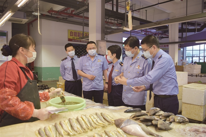 执法人员检查海鲜经营户销售及票据情况 通讯员 王婷