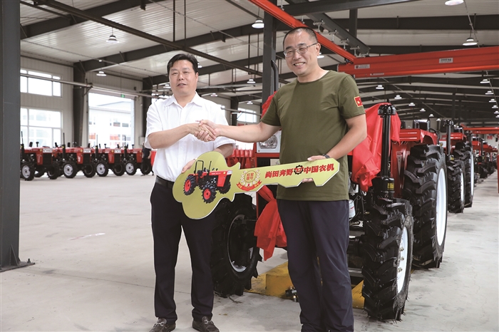 本报讯(记者 董迪)昨天,在吉林省延边州安图县经济开发区,总投资5000万元的浙拖奔野年组装1.5万台拖拉机整机项目投产,为当地高端装备制造产业发展增添了亮丽一笔。投产仪式上,浙拖奔野将首台下线的504-2拖拉机无偿捐赠给安图县明月镇红星村。 浙拖奔野(宁波)拖拉机制造有限公司位于尚田街道,是一家生产非道路用农用拖拉机整机及部件设备研发、制造、销售、服务的涉农科研型生产企业,具备年产2万台拖拉机的生产能力,东北三省是其主要销售区域。 在两地党委政府的大力支持下,该项目从洽谈到投产仅用不到1年的时间,跑出了东西部产业合作的新速度。 图为浙拖奔野向红星村捐赠拖拉机。