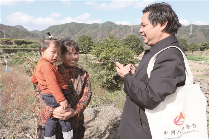 自全国第七次人口普查工作启动以来,大堰镇高度重视,加强领导,广泛宣传,积极行动,扎实推进人口普查各项工作。全镇入户摸底工作于10月底前完成,入户登记输入率超过90%。该镇后畈村人口普查工作抓得紧、起步早,全村分成4个片区,普查员起早贪黑上门登记核实,有的家里没人就追到田间地头。目前,该村人口普查入户登记工作已初步完成。图为普查员董为雳在地头向村民唐玉核实信息。