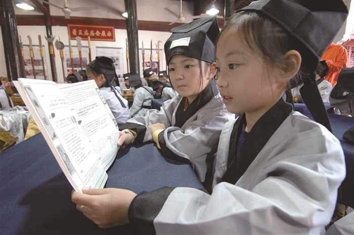 本报讯(记者 王红雨)11月11日,江口中心小学四年级的248名学生来到千年古村萧王庙街道青云村,开启一场名为“千年崇文、联步青云”的别样研学课程。穿汉服、读论语、印书签、装古籍,大家在古村探索文化,感受历史沉淀。 据青云村研学课程顾问王瑾介绍,整个课程从雕版印刷书签、线装古籍开始,把论语、村史、名人故事、手绘地图等内容装入学生手作书籍中,作为整个研学的主要脉络。 然后,在“亲亲堂”着汉服、学汉仪、读论语;在村史馆、孙鹤皋故居体会爱国爱乡情结;在孙从钦故居,学中医配中药,制作防感冒香囊;在游客中心,在非遗传承人指导下,做联步青云油包。