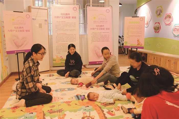 通讯员 孙银洁 邬云妃 11月13日上午,区妇幼保健院医护人员在金钟社区邻里中心开展《早产宝宝的家庭养育指导》互动课程。区妇幼保健院儿童保健科医生张丽娟为早产宝宝及家长带来游戏与家庭护理指导,通过亲子互动和游戏提升宝宝的语言、精细运动、大运动等能力。 每年11月17日是世界早产儿日,今年的主题是“母乳喂养为早产宝宝赋爱·赋能”。近几年来,区妇幼保健院多次开展世界早产儿日主题活动,旨在呼吁大家走进早产儿的世界,伸出温暖的手,倡导大家关注早产儿的生存和发展,关爱早产儿及其家庭,努力提高早产儿生命质量,促进母婴健康。