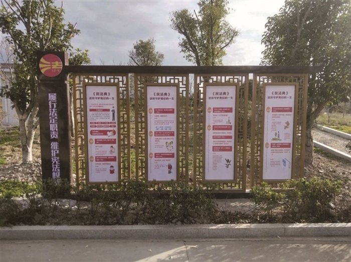 目前,我区已在江口街道后胡村、方桥街道包山村等地,建成4个民法典主题公园。