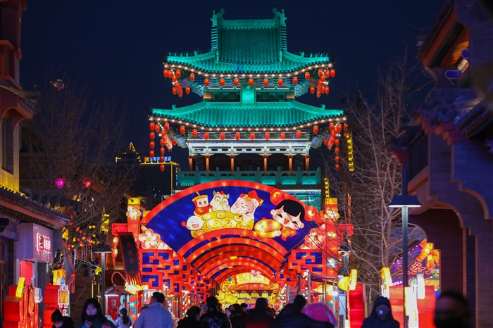 近日,位于甘肃省兰州市七里河区的兰州老街亮起近3000盏彩灯,为黄河兰州段冬季旅游增添新趣味。新华社发