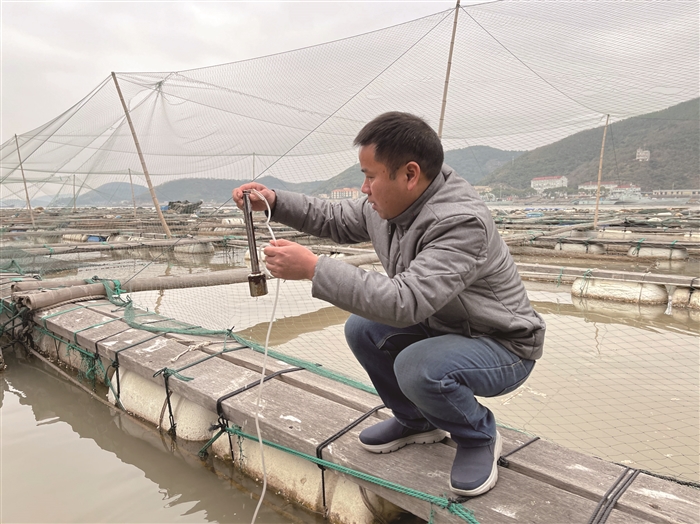 本报讯(记者 袁冰露)昨天,区气象台发布严寒警报,强冷空气于昨天傍晚前后开始影响我区。连日来,区农技总站组织专家提前赶往各水产养殖基地,指导养殖户做好防寒防冻各项工作。 “温度对水产养殖影响较大。寒潮影响期间,早晚温差大,水流也比较急,要密切关注水温变化情况……”昨天上午,在位于裘村镇石沿港的网箱养殖区域,区农技总站副站长董任彭仔细查看了大黄鱼养殖情况,指导养殖户采取网箱加网盖、鱼排缆绳、根绳加固等防护措施。 石沿港共有海水养殖网箱1700只,养殖品种以大黄鱼为主。董任彭告诉记者,大黄鱼属于高密度养殖水产品,对气温、水温、水流等条件要求较高。目前,该区域水温11.1℃,问题不大。但这几天养殖户需时刻关注水温、水流等情况,一旦水温下降幅度超过大黄鱼耐受能力范围,需要及时转移,减少损失。 养殖户在测量水温