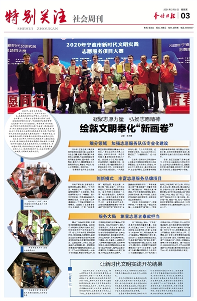 今日本报第3版“特别关注”推出《凝聚志愿力量 弘扬志愿精神/绘就文明奉化“新画卷”》,讲述奉化志愿者的故事。