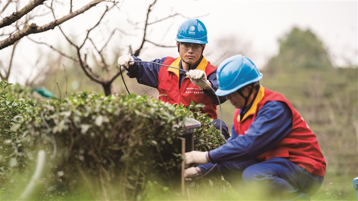 本报讯(记者 李露 通讯员 毛立纲 张雪玲)江南三月,春意渐浓。近日,国家电网浙江电力(奉化)红船共产党员服务队队员来到雨易山房,为350亩茶山进行用电安全“体检”,这也成为春天茶山上的一道靓丽风景线。 检查中,队员们发现在茶山喷灌控制箱外有10余米电缆线裸露在潮湿的石道旁,存在一定安全隐患。考虑到该石道是采茶工人和游客上下山的必经之路,3名队员随即驱车从属地供电所拿来电缆套管,给裸线装上了防护“盔甲”。之后,队员们又细致地检查了配电箱、电源开关和电线,并向制茶师傅宣讲用电安全知识。 “制茶对用电稳定性要求很高,有了你们专业高效的服务,我们对炒制出高品质的茶叶更加有信心了。”制茶师傅蒋丙如介绍,目前雨易山房接到来自辽宁、上海等地的大量茶叶订单,60余名采茶工人已上山采摘春茶,不久后制茶用电量将迎来高峰。 “随着春季到来,茶场、农场、竹笋加工厂以及各类农庄、民宿的用电量逐步攀升,区供电公司将积极组织红船共产党员服务队、‘小草’电力志愿服务队开展有针对性的上门服务,提升用户用电满意度。”区供电公司负责人说。