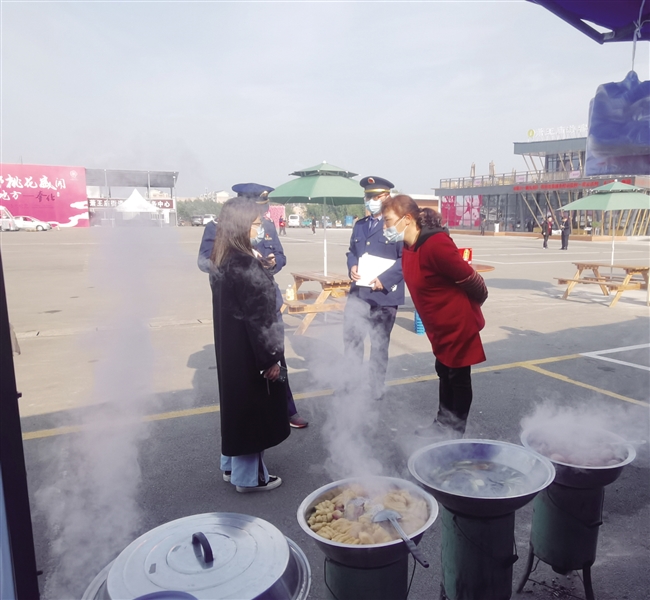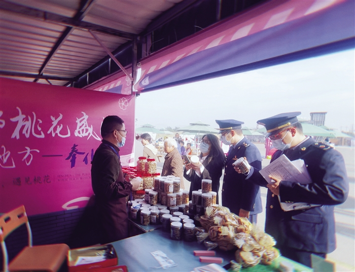 通讯员 张丛丛 3月13日,一年一度的“桃源赶集”美食活动盛大开启,吃美食、赏桃花,好吃好看又好玩。活动现场有很多地产特色美食供游客品尝。为保障食品安全,打造奉化美食地产品牌,区市场监管局多措并举,做好食品安全工作。 会前把控 “浙里吃”地产特色 区市场监管局提早对接,反复商议,详细制定食品安全应急预案,特别突出疫情管控和突发事件处理,强调对重点食品的全链条监管。同时加强对进场商户的经营许可等资质证明文件、健康证明、进货票据审查,督促经营户开展自查自评并签订食品安全责任书,确保市场主体规范。 某牛肉干面店老板周先生一边忙活一边感叹:“蓝制服的同志可贴心了。为准备今年的水蜜桃文化节,去年11月开始市场监管部门就指导我们店铺,特别对我们店产品品质提升、卫生环境改善提出了很多建设性意见建议,并帮我们完成活动前所有手续。有了他们指导,这样的活动我一点没有手忙脚乱”。 现场布控 “零时差”纠纷处理 活动期间,区市场监管局副局长徐伟德、餐饮科科长楼湘萍等亲临现场监督指导。驻点执法人员开启无间断巡查模式,检查进货票据等相关资质。通过小微纠纷就地处理、当场处理、满意处理,打造小微纠纷“零时差”处理模式,保障消费者权益,提升消费体验。今年还配合现场直播活动,打造“镜头下”执法,树立法治形象。 游客蒋女士说:“今年特地带着姥姥来玩,来之前还担心饮食卫生和消费纠纷。但现场看到市场监管局的执法人员不间断巡查,并对我们的疑问耐心解答,细致入微,这吃的不仅是美味更是放心!今天玩得特别尽兴,姥姥也很开心。” 场外预备 “三结义”线上联动 除了执法人员现场巡查,今年区市场监管局利用网络组建线上“智囊团”。“智囊团”主要由预备食品专业执法人员、投诉举报和法律法规专业人员组成。这个线上特别小组,随时待命,为解决现场纠纷提供智慧力量。 在现场指导工作的执法人员楼湘萍表示:“在如今这个多媒体时代,信息的快速传播对我们投诉举报处理和执法办案都提出了更高要求。机构改革后,这样跨领域、跨部门的互动已成为现代化市场治理的重要手段。这一次我们特别加强了内部联合,和萧王庙街道、公安分局开展线上联动,为突发事件的快速处理提供更为全面的安全保障。”