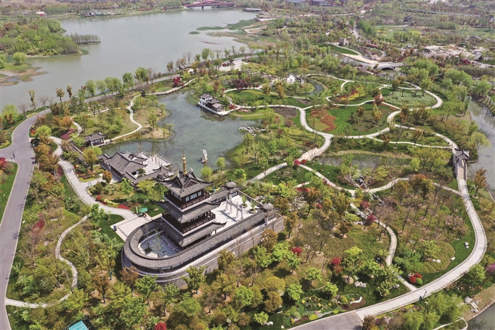 4月8日拍摄的2021年扬州世界园艺博览会园区(无人机照片)。