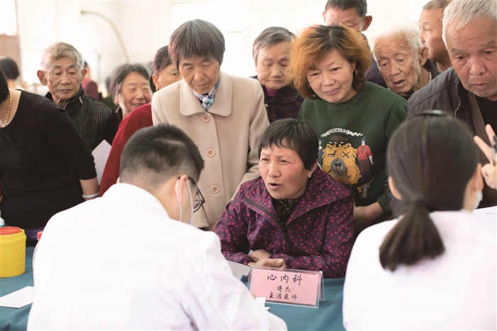 4月10日上午,区人民医院医共体总院神经内科、骨科、消化内科等科室医务人员走进萧王庙街道傅家岙村,开展大型义诊活动,并宣传帕金森等相关疾病预防知识。记者 袁伟鑫