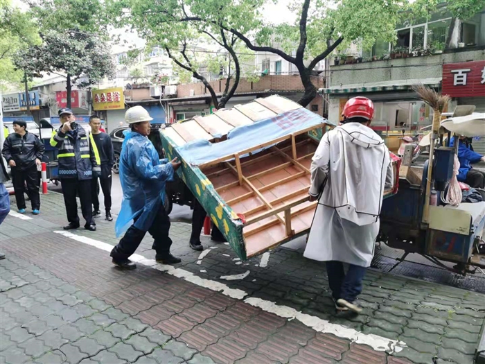 本报讯(记者 袁冰露 通讯员 葛梦园)昨天上午,锦屏街道联合区综合执法局、区市场监督局、区公安分局对东门路、城基路、锦屏南路等区域违规住人的沿街商铺开展联合执法行动。 此次行动采取突击检查方式,对责令期限整改的店铺进行回头看,对屡教不改的店铺依法强制搬离床铺等生活用品,并对业主展开批评教育。据了解,该区域前期排摸发现的违规住人的门店共31家,通过前期责令整改清理的有22家,此次联合执法共清退9家。 下步,该街道将进一步加强日常巡查,持续跟踪督改,推动火灾防控工作的持续深入,保持违规住人整治工作已取得的成效,杜绝“回潮”现象发生。同时加大宣传力度,增强居民群众的防火安全意识,为辖区居民群众营造安全有序的社会治安环境。 图为清理现场。