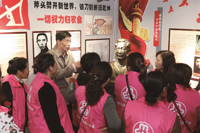 本报讯(通讯员 竺盛涌)“革命先辈之所以令后人敬仰,就是因为他们不管遇到怎样的艰难险阻,始终坚定理想信念,一心跟党走!”4月13日,在方桥街道竺家村宁波市中共党史教育基地竺扬故居陈列室,奉化新四军研究会会长竺松民向一批穿着粉红色志愿者服装的女志愿者讲解道。 这批女志愿者是来自方桥街道各村的妇联主席。当天是该街道村干部素养提升班开班之日,她们是第一批学员。街道特地将开班第一课安排在竺扬故居,让学员们学习百年党史,接受革命精神洗礼。 竺扬故居陈列了竺扬半身铜像,以及竺扬等革命先辈生平、革命经历介绍的文字、图片等,还在玻璃柜里展示了革命先辈生前工作、生活遗物。1939年,在这里先后召开了中共奉化县第一次党代会、中共宁波地区第一次党代会。 沿着红色长廊,从村口到竺扬故居,学员们仔细聆听、认真观看,在竺松民的讲解下,重温了革命先辈不怕牺牲、顽强不屈的革命历程,也看到了竺家村在红色党建引领下发生的可喜变化。“这次来竺家村上了一堂很有意义的课,大家感触很深。先辈们在这么艰苦的条件下不屈不挠,为理想而奋斗,这种精神是宝贵的精神财富。我们要做好红色基因的传承者,为乡村振兴、为方桥发展更加努力工作。”街道妇联副主席邬艳红说。 方桥街道村干部素养提升班由街道办事处主办、方桥成人学校承办,以“发展终身教育,助推乡村振兴”为主旨,通过搭建终身学习平台推进全民学习,切实提升村干部综合素养和能力,增强村干部工作信心,更好地适应新形势下农业农村工作新要求,助推方桥乡村振兴。“提升班将按计划分批次、分类别开展培训,内容包括思想政治、政策法规、业务知识、主题研讨、先进典型考察等。”方桥成人学校校长王启平说。
