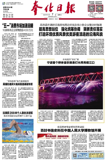 宁波首个桥体音乐喷泉灯光秀亮相江口