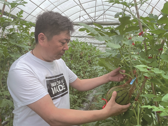 本报讯(记者 严梓宁)近日,奉化绿苑果蔬专业合作社通过创新模式种植的8424西瓜获得省级金奖。 6月7日上午8时,记者在绿苑果蔬专业合作社大棚里看到,一只只圆滚滚的8424西瓜躲在茂密的藤蔓里。今年浙江精品西瓜评选活动中,合作社选送的8424西瓜凭借汁多味甜等优势,在全省67个品牌西瓜中脱颖而出,获得金奖,成为全省最好吃的西瓜之一。 “在前期施肥和管理上,我们严格按照标准实施,今年得了金奖,说明我们的努力有了收获。”绿苑果蔬专业合作社负责人李吉龙高兴地说。据了解,该专业合作社目前种植大棚西瓜30余亩。 近年来,该合作社利用“新品种+新技术”的方式种植高品质西瓜。今年,合作社引进了锦霞8号、嘉秀艳妃等新品种西瓜,推行离地悬空吊种小西瓜的种植模式。“传统的爬地西瓜由于光照不均匀,容易导致瓜瓤糖分不均,采用搭架爬蔓的种植方式,可以使西瓜的品相、品质和产量都得到提升,适应市场需求。”李吉龙说。 据悉,绿苑果蔬专业合作社的西瓜上市后供不应求,主要发往各大商场、超市和水果店。“今年,我们合作社的大西瓜售价每公斤在7-8元,小西瓜价格每公斤在14-16元。”李吉龙说。
