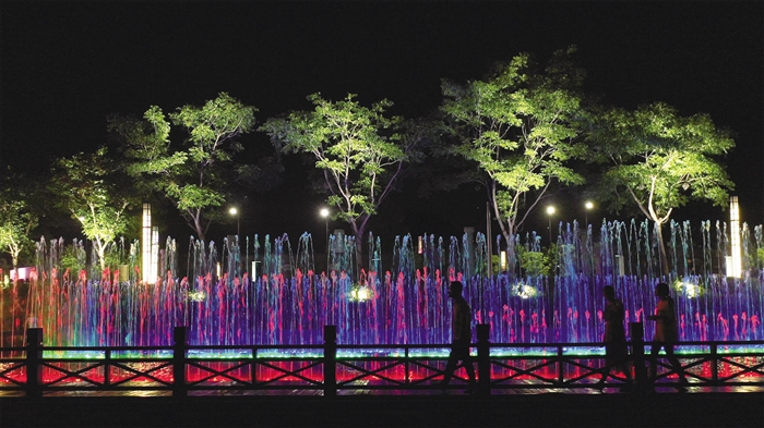 图为仁湖公园音乐喷泉灯光秀。记者 成功 周渊民
