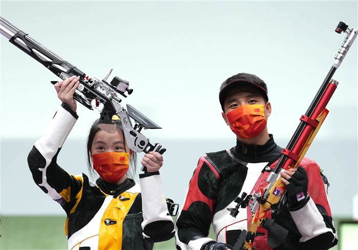 新华社东京7月27日电(记者 林德韧 王梦)27日的朝霞射击场再次迎来捷报,杨倩和杨皓然组合在10米气步枪混合团体决赛中以17:13击败美国组合夺金,延续了中国射击队在本届奥运会上的强势表现。 这是中国射击队在本届奥运会上的第三枚金牌,也是杨倩的第二枚金牌,3天前,她在女子10米气步枪比赛中摘下东京奥运会首金。名将杨皓然则终于实现了自己奥运会金牌的突破。 本场比赛杨倩和杨皓然表现非常强势,在第一阶段资格赛中,两人的组合就打出了633.2环的好成绩,打破了第一阶段资格赛的世界纪录。第二阶段资格赛,他们又以稳定的状态摘得头名,进入金牌争夺战。 杨倩和杨皓然在金牌争夺战中的对手是美国组合塔克和科泽涅斯基。双方一开场就展开激烈交锋,杨倩和杨皓然稍占上风,以5:3领先。此时,美国组合开始发威,连下三城将比分反超为9:5。关键时刻,杨倩和杨皓然都顶住了压力,用连续的高环数连赢两局,把总比分扳平。 平局之后,美国组合又占据了些许上风,不过杨倩和杨皓然已经势不可当,最终以4分优势收获金牌。 “感受就是非常开心,也非常激动能够取得这样的荣誉。”杨倩说。 成名多年终于拿到奥运金牌,杨皓然表示:“我觉得我们背负的东西更多是使命感和荣誉感,这些东西是要一直背着的,对我们来说是让我们不断地进步,不断去取得更好成绩的动力。” 总结自己的两枚奥运金牌,杨倩表示,最重要的就是把握心态,做好过程。“我始终相信,只要我的过程是好的,那我的结果肯定不会差,我始终坚信这一点,所以不断告诉自己去做好过程,抓好我能做的。” 至此,东京奥运会气步枪和气手枪的全部6个项目宣告结束,中国队在6项中取下3枚金牌、1枚银牌和3枚铜牌,展现出了世界级强队的实力。