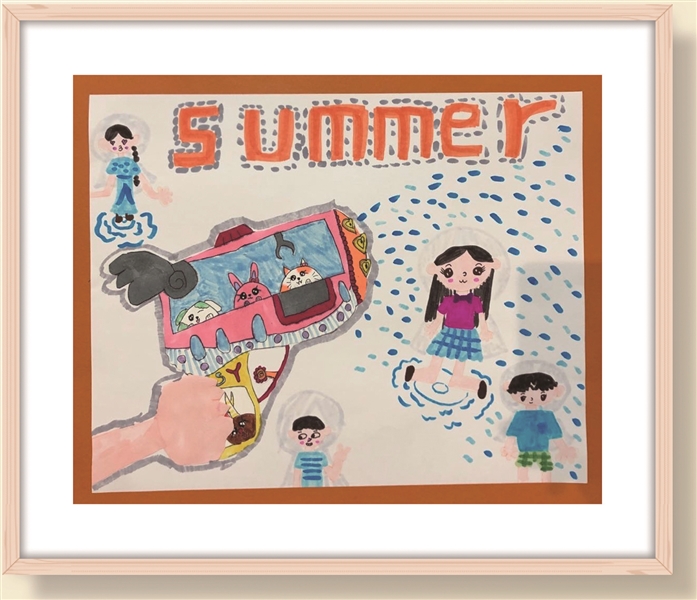 大家好,我是来自居敬小学三年级的小夏米宋佳辰。我非常喜欢画画,画画可以让我感到很轻松。我喜欢研究漫画中的各种技巧并坚持练习,这幅是我创作的美式人物头像。希望大家跟我一样喜欢画画哦! 作品展示 《头像》 老师评语 本幅作品是对美式漫画特点的初步了解,具有粗线条和硬朗的画风,色彩鲜明,分镜明确,展现出特殊的视觉风格。 自我介绍 大家好,我是小夏米黄锶源,我今年8岁了。我喜欢画画,因为我可以把脑海中美好的事物都画在纸上。更美妙的是,我的每一幅画都有一个好玩的故事,可以跟大家一起来分享。 作品展示 《夏天》 老师评语 这幅作品运用丰富的想象力设计出一个水枪大战的场景,一把握在手里的可爱水枪以及一群正在玩水枪大作战的小朋友。作品配色舒适靓丽,构图新颖独特,表现出了儿童视角的趣味性。
