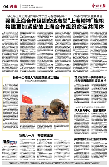 强调上海合作组织应该高举“上海精神”旗帜 构建更加紧密的上海合作组织命运共同体