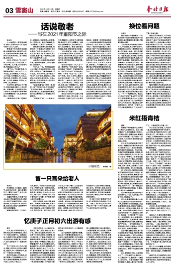 凌金位 什么是敬老?敬老就是尊老、爱老,这里所说的“老”包括“吾老”以及“人之老”。 敬老是中华民族的传统美德,是道德的根本与教育的出发点,也是中华民族强大凝聚力和亲和力的具体体现。我不揣浅陋,试举几例: 《礼记·王制》曰:“五十杖于家,六十杖于乡,七十杖于国,八十杖于朝。九十者,天子欲有问焉,则就其室,以珍从。” 《管子》云:“所谓老老者,凡国都皆有掌老。年七十已上,一子无征,三月有馈肉;八十已上,二子无征,月有馈肉;九十已上,尽家无征,日有酒肉。死,上共棺椁。劝子弟:精膳食,问所欲,求所嗜。此之谓老老。” 汉文帝时,皇帝诏令天下郡守,向政府推举孝廉之士,授以官爵。何谓孝廉?这是选拔官吏的一种科目,州郡每年可荐举孝顺父母和清廉者各一名,经考核后授以一定官职。 《随园诗话》记载:“乾隆辛未,圣驾南巡,有湖南老人来接驾,年一百四十岁。皇上先赐匾额云:‘花甲重周。’又赐云:‘古稀再度。’” 贾琏是《红楼梦》里的混蛋,即便这样一个混蛋也不忘敬老,他口吐莲花:“如今当今贴体万人之心,世上至大莫如‘孝’字,想来父母儿女之性,皆是一理,不是贵贱上分别的。”(《红楼梦》第16回) 由是观之,孝亲敬老是封建时代做人最起码的道德。为什么要敬老?说法较多。 “天人合一”说。持这种说法的人认为整个宇宙是有秩序的,山岳河流,花草树木,飞禽走兽等等,无不如此。两千多年前,孟子提出了“五伦”:父子有亲,君臣有义,夫妇有别,长幼有序,朋友有信。中国人喜欢将人与天地联系在一起,敬老是依照自然法则行事。 “经验丰富”说。“家有一老,胜有一宝”“不听老人言,吃亏在眼前”“老马识途”等等。老人阅历深广,经验丰富,对人生更有透辟的看法,他们可以教导我们,少走弯路,所以要敬老。 “因果报应”说。一个家庭中,父母尊重老人,他的孩子会看在眼里,等他老了,孩子也尊重他。如果全社会都尊重老人,那么等你老了,别人也会尊重你。敬老、爱老者会有福报,轻老、损老会折自己的福。 “社会和谐”说。如果一个国家广泛存在着老无所养、老无所医、老无所乐、老无所为等,那么这个国家每天会上演兄弟阋墙、妯娌吵架、六亲不和、寻死觅活的事。家庭不稳,国家何以稳? 我的观点类似“天人合一”说:敬老符合“先来后到”法则。我们都是“地球号”宇宙航船的乘客,我们在太空中的飞行速度是一样的,不存在“天上一日,人间一年”的事。活了40岁的人跟活了80岁的人就是不一样,不可“等量齐观”。虐待老人属于逆天而行,必与灾祸为伍。不敬老、不爱老,本质上是一种僭越行为。借用《红楼梦》中的贾宝玉一言来说:“你这么明白的人,难道连‘亲不隔疏,后不僭先’也不知道?” 我们这个时代为什么要大力倡导敬老这个传统?因为这是一个优良的传统,只是到了近代以后,敬老像其他一些事情一样变得怪异起来——中华民族孝亲敬老的传统美德受到冲击!如今,许多人忙于挣钱,与老人一起的时光越来越少;“娶了媳妇忘了娘”“子女住新楼爹娘住旧房”“厚葬薄养”等不孝事例司空见惯;拜金拜物使子女与老人之间只存在名义上的关系,溺幼轻老使老人普遍失去权威;“今之孝者,是谓能养,至于犬马,皆能有养,不敬,何以别乎?”如今,少尽其力、老弃其身、厌烦老人、不尽赡养义务,乃至霸占老人养老金等现象时有耳闻,由此使亲人反目等不和谐现象时有发生。 所幸的是“时过于期,否终则泰。”这些年来,国人开始重新关注中国传统文化,开始大力弘扬孝亲敬老传统美德。我在不同场合多次看到这样一则公益广告,其中记忆最深的几句是:国是家,善作魂,勤为本,俭养德,诚立身,孝当先,和为贵。这些价值观我们祖先早已有之。在我们束手无策时,蓦然回首才发现:只有回到祖先的智慧中去,回到优秀的传统当中去,并继承之弘扬之,才能治疗形形色色的“社会病”。