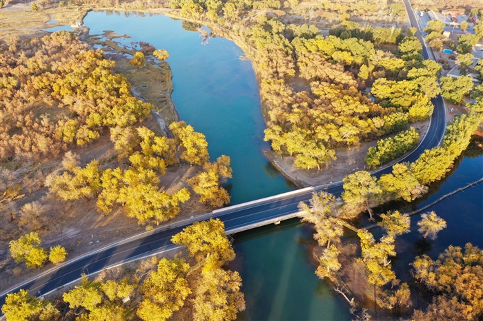 金秋时节,内蒙古自治区阿拉善盟额济纳旗的胡杨林披上金装,吸引众多游客前来观赏。新华社发