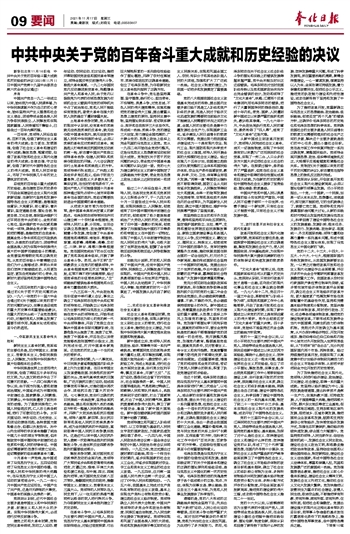 中共中央关于党的百年奋斗重大成就和历史经验的决议
