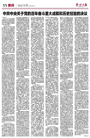 中共中央关于党的百年奋斗重大成就和历史经验的决议
