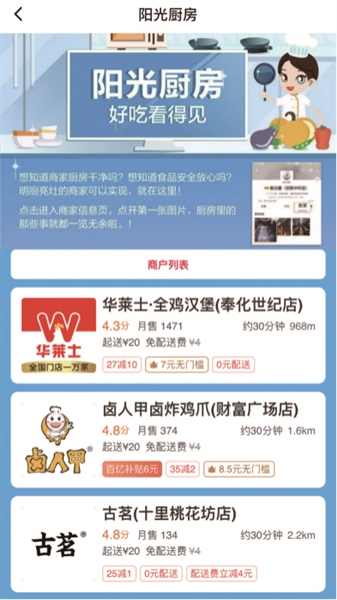 通讯员 王桂凤 后厨直播实时观看,随时了解外卖餐饮的食品切配、烹调、洗消等实时情况……今年下半年开始,区市场监督管理局按照上级要求,实施分管副局长负责抓,科所联动的行动方案,聚力推进外卖餐饮“阳光厨房”建设,通过在外卖餐饮单位安装摄像头的方式,将视频数据上传至市场监督管理局及点餐平台后台,实时直播餐品的加工制作过程,使得老百姓吃得安心、吃得放心。截至目前,已建成网上“阳光厨房”710家,任务完成率为157.78%,“阳光厨房”周在线率达到90.59%,任务完成率为106.6%。 店内经营者自主监督更加便利,顾客满意度和信任度有所提高,外卖餐饮“阳光厨房”中的摄像头,不仅能将摄取的画面上传控制中心,还能将画面同步到手机订餐APP。以某外卖平台为例,在登录后选取商家,找到明厨亮灶,便能及时查看商家的后厨情况,消费者可以通过APP随时了解餐饮制作过程,倒逼经营者规范操作流程,做好后厨卫生。同时,视频直播又可以引导消费者选择卫生状况更好的餐饮店消费,形成正向激励,社会共治的良性循环。 随着互联网经济的快速发展,外卖现在成了不少人吃饭的最多选择,日常我们消费的外卖餐饮很多都不设置堂食,不透明化的加工环境更加深了消费者的担心。外卖食品安全问题,一直是不少人关心的热点话题,以前大家选择外卖的时候,只能根据商家广告和买家评论判断,难免会遇到实际菜品的做法、份量等和宣传不符合的情况。如今,对奉化的消费者来说多了一道保障,推出外卖餐饮“阳光厨房”,消费者选择外卖前,可以看看后厨的制作过程,这样挑选起来更加放心,外卖订餐“阳光厨房”推出运行以来,饿了么、美团外卖首页专区可以直接点击,通过网络直播,监督外卖商家的卫生情况。 2.点击“阳光厨房”找到要点餐的商家 1.进入外卖点餐APP(饿了么为例) 3.点击商家-阳光厨房LIVE 4.在线查看制作全过程