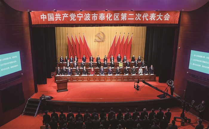 胡永光代表一届区委作工作报告。 记者 王红雨 摄 中国共产党宁波市奉化区第二次代表大会在奉化剧院隆重开幕。图为大会现场。 记者 王红雨 摄 本报讯(记者 张礼兵)新征程浩然开启,新时代华章铺展。昨天上午,全区瞩目的中国共产党宁波市奉化区第二次代表大会在奉化剧院隆重开幕。胡永光同志代表中国共产党宁波市奉化区第一届委员会向大会作题为《乘势而上开新局 奋勇争先攀新高 加快建设现代化滨海大都市健康美丽新城区》的工作报告。魏建根主持。 昨天的奉化剧院布置得庄重而热烈,主席台正上方悬挂着“中国共产党宁波市奉化区第二次代表大会”的巨幅会标,主席台后方鲜艳的红旗簇拥着党徽,二楼眺台上挂着“乘势而上开新局 奋勇争先攀新高 加快建设现代化滨海大都市健康美丽新城区”的横幅。 主席台前排就座的大会主席团执行主席有:胡永光、魏建根、顾卫卫、陈红伟、徐震宇、唐军华、黄峻、徐海伟、李春泉、刘春萍、邬培栋、张义廉、屠雪松、褚明生。 本次大会应到代表310名,实到代表308名,因事因病请假2人,符合规定人数。8时30分,在雄壮的《义勇军进行曲》声中,大会正式开幕。 胡永光同志在热烈的掌声中作报告。报告共分四个部分:一、过去五年的工作;二、今后五年的总体要求;三、今后五年的主要任务;四、纵深推进全面从严治党。 胡永光在报告中回顾了过去五年的工作。他说,区第一次党代会以来,在党中央和省市委的坚强领导下,区委团结带领全区党员干部群众,抢抓设区历史机遇,积极应对复杂多变的宏观形势和新冠肺炎疫情严重冲击,用心做好加速南融合、念好山海经、做强增长极、建设新城区“四篇文章”,地区生产总值预计突破800亿元,一般公共预算收入实现翻番,固定资产投资增速连续19个季度位居全市前三,经济社会发展各项事业取得显著进步,顺利实现“一年一个样、三年大变样、五年奉献一个新奉化”目标。五年来,我们举旗铸魂讲政治,党的领导得到新增强;筑巢引凤育春苗,经济发展注入新动能;全域共建优环境,城乡面貌焕发新风采;改革破题提效能,体制机制增添新活力;以人为本惠民生,同城指数实现新提高;管党治党转作风,干部队伍呈现新气象。这些成绩的取得,归功于习近平新时代中国特色社会主义思想的正确指导,归功于党中央和省市委的正确领导,归功于我区历届党委打下的扎实基础,归功于全区各级党组织、广大党员干部群众的共同努力,归功于社会各界的大力支持。 胡永光说,五年来的成绩来之不易,五年来的经验弥足珍贵,回顾五年来的发展历程,我们深深体会到,必须坚持党的全面领导,坚定不移听党话、跟党走;必须坚持人民至上的发展思想,一切为了人民,一切依靠人民;必须坚持改革创新的发展思路,敢于摆脱定势、突破常规;必须坚持团结奋进的发展氛围,众志成城、风雨同舟;必须坚持全面从严治党,推动干部作风大转变、能力大提升。在总结经验成绩的同时,更要清醒地看到问题与不足,坚持问题导向,采取有效举措,推动奉化各项事业不断迈上新台阶。 胡永光指出,未来五年,是风起云涌的新时代,也是干事创业的好时代。从时代大势看,机遇前所未有,如何在新一轮发展中顺势有为、抢占先机、赢得主动,是我们必须研究的首要课题。从发展规律看,竞争前所未有,如何在新一轮区域竞赛中砥砺前行、奋勇争先、勇立潮头,是我们必须破解的现实难题。从历史维度看,挑战前所未有,如何在新发展阶段接续奋斗、乘势而上、更进一步,是我们必须面对的重大命题。从各界期待看,压力前所未有,如何交出“二轮攀高”的高分报表,让新一轮发展成果更多更好地惠及全区人民,是我们必须答好的历史考题。全区上下唯有倍加珍惜大好时光,把当下干事创业的良好氛围巩固好拓展好,奋楫向前、奋力拼搏,才能推动奉化破浪前行、走在前列。 胡永光在报告中提出,今后五年全区工作的指导思想是:坚持以习近平新时代中国特色社会主义思想为指导,坚持稳中求进总基调,统筹推进“五位一体”总体布局,协调推进“四个全面”战略布局,深入贯彻新发展理念,加速融入新发展格局,坚决扛起新发展阶段高质量发展的历史使命,聚焦“跨越发展、二轮攀高”,以“竞跑竞绩、进位进阶”为主线,大力推进“五大变革、五大跃迁”,高水平打造共同富裕特色区,奋力展现现代化滨海大都市健康美丽新城区美好图景。 胡永光指出,确立现代化滨海大都市健康美丽新城区的奋斗目标,彰显了“宁波所需、奉化所能”的政治担当、“一以贯之、接续奋斗”的政治定力和“与时俱进、迭代升级”的政治追求。今后五年,奉化要打造的现代化滨海大都市健康美丽新城区,是都市经济蓬勃发展的活力之区、青创要素高度集聚的年轻之区、城市气质动感时尚的品质之区、山海风光交相辉映的魅力之区、文化底蕴充分彰显的文明之区、群众生活共富优享的幸福之区。实现这一目标,必须以“竞跑竞绩、进位进阶”为主线,树立全程发力、全速奔跑、全面赶超的鲜明导向,一年一个新台阶,五年更上一层楼,实现城市能级的蓄势跃升;必须以系统性重塑大力推进思想观念、发展动能、空间格局、制度体系、干部能力“五大变革”,以创造性张力全面推动发展思维、综合实力、城乡形象、治理效能、工作质效“五大跃迁”