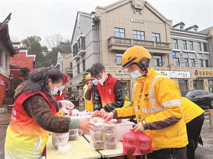 本报讯(记者 傅新欣 单晓峰)昨天上午,位于开源路的四通一达“甬爱e家”站点欢声笑语、其乐融融。原来,由区委组织部、团区委、区志愿者协会、区青年联合会联合发起的“1+N”腊八暖心行动正在这里启幕。 活动现场,何美蓉道德模范工作室志愿者热情布粥:“小哥辛苦了,每人可以领两份粥,一份留给自己,一份送给想要关心和温暖的人。”随后,他们来到快递车间,为正在忙碌的快递小哥“配送”腊八粥。 上午10时,在溪口镇武岭门街头,剡溪志愿者协会志愿者也在集中布粥。为了将腊八粥送至隔离点的工作人员手中,揭榜“爱心外卖”招募令的美团骑手喝完手中的腊八粥后,迅速将一份份腊八粥放进配送箱,送至隔离点。“‘甬爱e家’给我们提供了太多便利,我们也想用自己的力量,把爱传递下去。”外卖小哥陈亚飞笑着说,“奉化是一座有温度的城市,能在特殊时间为抗疫一线工作人员送腊八粥很有意义。” 上午11时,在宁波利安科技股份有限公司,区志愿者协会志愿者为来自甘洛的务工人员送上腊八粥。务工人员拉莫笑着说:“这是我第一次喝腊八粥,味道甜甜的,很好喝。” 目前,全区30个“甬爱e家”站点向快递小哥、外卖骑手、网约车司机、环卫工人等户外一线工作者开放,提供设计温馨、功能齐全的“加油站”。据悉,本次活动为期两天,以“甬爱e家”为载体,推出“1+N=无限”的腊八暖心活动,志愿者兵分四路为户外一线工作者、隔离点工作人员等群体送上近600碗腊八粥。