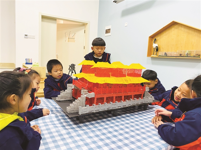 本报讯(记者 沈晓萍 王林威 通讯员 鲍行捧)“我好想变小走进去。”1月10日上午,在岳林街道君麟府幼儿园课程教室里,孩子们看着自己用3D打印笔绘制出的惠政桥成就感满满。 “幼儿园离惠政桥比较近,春游、秋游都会去那里,孩子们非常了解它。”课程教师毛颖娜介绍,这学期,幼儿园创建了3D打印梦想工作室,便萌生制作惠政桥立体模型的想法。观察、拍照、画图,分解桥梁结构、观看建桥视频后,在教师引导下,孩子们用3D打印笔打印、粘合,历时50余天制作完成这座仿古式亭榭建筑。 该园园长龚育红表示,惠政桥是奉化地标建筑,希望以这样的方式,把浓浓家乡情印刻在小朋友心中。