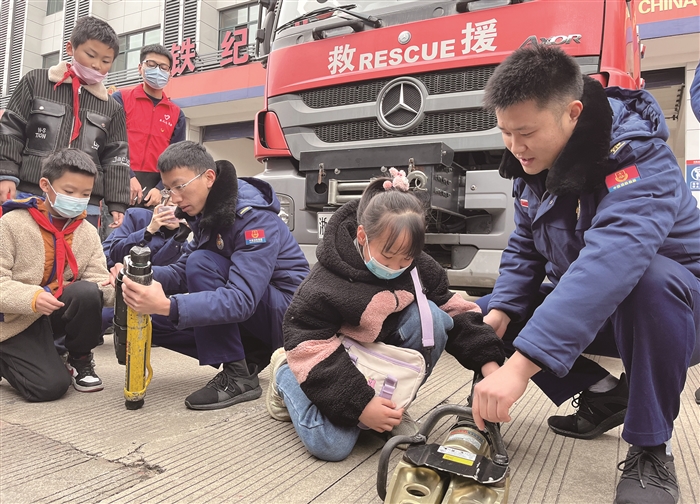 本报讯(记者 傅新欣 邬诚挺)“我今天看到了许多消防员叔叔救火时用的工具和设备……”昨天上午,团区委携手区消防救援大队,举办了一场亲子家庭实践活动。15组外来务工亲子家庭“零距离”观摩了消防车辆、学习了消防安全知识、体验了消防演练。 当天上午9时许,消防员用通俗易懂的语言向亲子家庭讲解了各类消防器材的用途和日常火灾预防知识,小朋友们认真听讲、争相提问。随后,在消防员的指导下,大家体验了正压式空气呼吸器佩戴与消防水带实操等项目,现场气氛活跃。 “今年响应号召不回老家过年,没想到团区委为我们提供了这么好的福利,让我们有机会在消防救援大队参加亲子活动。”湖北籍外来务工人员张方方说道。 “为了关爱外来务工人员子女成长,我们策划了本次活动,希望能丰富他们的生活。”团区委工作人员表示,目前,团区委正在推出“崔译文小姐姐陪你过大年”系列活动,让留奉过年的市外务工人员及其子女感受奉化的城市温度,体验当地的特有年味。