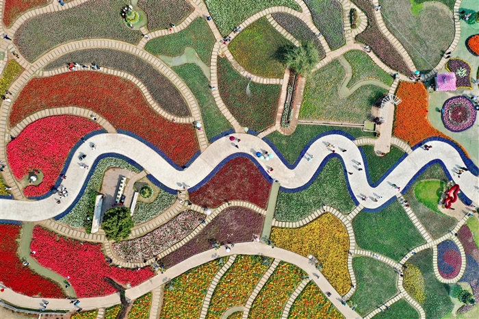 3月10日,游客在成都市新都区漫花庄园赏花(无人机照片)。