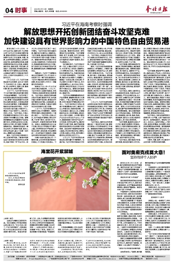 解放思想开拓创新团结奋斗攻坚克难 加快建设具有世界影响力的中国特色自由贸易港