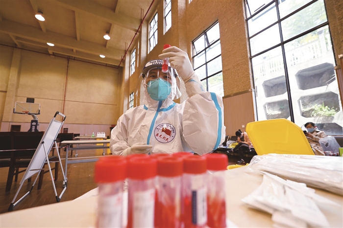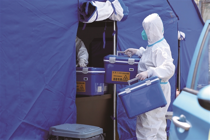 全员核酸检测高效有序 5月1日,假期第二天,大家还沉浸在团聚和休闲时光中……15时19分,我区报告1例新冠肺炎病毒初筛阳性人员。疫情防控冲锋号吹响,全区医护人员、公安干警、党员干部以及各行各业“战疫者”闻令而动,逆行“疫”线。本期“视觉奉川”,我们用镜头记录城市逆行者。 樊建威 摄 西坞高速出口检查外地货车司机“两码一证” 西坞高速出口交警检查入境车辆 紧急转运“三区”人员 医护工作者检查核酸试剂 “大白”给小朋友核酸采样 志愿者查看进入“三区”人员“两码一证” 医护工作者完成核酸采样后吃盒饭 医护人员接收核酸试剂样本 完成核酸采样后,医护人员脱下防护服