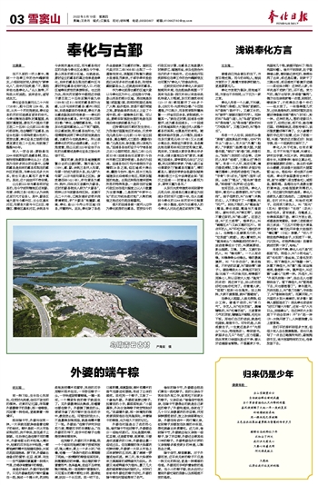 沈东海 普通话已完全普及的当下,方言日渐式微。而今的年轻人,能说方言的少了,略懂方言修辞的魅力,更是寥寥无几。 奉化方言较为复杂,因地域不同,方言也不尽相同,以下仅为一家之言。 奉化人形容一个人瘦,不叫瘦,叫“柴桄”(柴棍),比“柴桄”更瘦的,叫“香桄”(香杆子)。又瘦又长的,叫“晾竿”(晾晒衣服的竹竿)。而胖的叫“鸟猪”(猪),比“鸟猪”更胖的叫“柴油桶”,比“柴油桶”更胖的叫“万吨轮车”。又矮又胖的,叫“矮冬瓜”。 形容一个人壮实,说他的头像“果桶”(盛放果品的木桶),也叫“利市头”(猪头),耳大如“风篷”(船帆),“手掌肢”(胳膊)像大腿,大腿像牛腿,“背臼”(背)像门板,肉像石头,“别别”(突突的)还会弹。这样的人有多“结棍”,三榔头还“拷勿倒”。形容一个人坏,面皮石厚,嘴巴像老虎钳,又像火铁钳(多指女性嘴巴毒辣),讲起闲话像吃了枪药。“手骨”(手)忒长,“指壳”(指甲)忒深。头削了“笔尖”,“眼乌珠”像老鼠,“呱啦啦”(拟声词)还会转。 世间百态,众生百相。奉化人眼中,看见什么都想要的,叫“讨饭相”。脑子很笨的,叫“白蒲”(未熟的瓜)。人不笨但干了一件蠢事,叫“死尸”。到处欠钱的,叫“鲳扁鱼”(鲳鱼,奉化话里,鲳扁与欠遍音同)。爱吹牛的,叫“弹王琴”。说话不着边际的,叫“唱山歌”。狂妄之徒,叫“王三胡琴”。难弄的人,叫“畸翘瓦爿”(又斜又翘的瓦片)。有点坏的人,叫“坏吃艿头”(难吃的芋头)。生得矮小且瘦弱无力的,叫“垃圾猫”(病猫)。病入膏肓的,叫“瘟鸡耷头”(鸡得瘟疫时的样子)。说话做事没分寸的,叫脚高脚低、爹头娘脚。又懒,又笨,又爱打扮的人,叫“懒花笨”。一个人有点懒,叫懒得骨头也懒出。懒的最高境界,叫“千手勿动”。调皮捣蛋,不听话的孩童,叫“猢狲精”(猴子)。猢狲精因太小,桥倒压不到叉鱼(比喻下一代衣食无忧,啥事都不用操心),所以总被大人骂:“魂灵”死点进!再这样下去,后山的烂泥好吃也给你吃完了。你看看人家,“屁眼”(屁股)也生魂灵。如上种种,大家不爱搭理,就叫“插蜡烛”。 在奉化人眼里,人虽无贵贱,但分工种。普通干活的,叫“卖力气”。手艺人,叫“吃手艺饭”。靠嘴赚钱的,叫“吃嘴巴饭”。三者算卖力气的顶苦,赚赚血汗铜钿,吃吃长下饭。用他们自己的话说,就是吃吃猪食,做做牛力。可怜的是,人贫却爱生子,一生竟还是多个“光郎头”(光头,特指男孩)。等到读书,家里多出几只“书包”,压力很重。因此常常口袋里比脸还干净,要从牙齿缝里省铜钿。不像富家少爷,兜里有几个钱,就要开始叫了(钱在兜里叫嚷)。每天干到深夜,肚子饿得唱山歌,看到路边卖吃的,馋痨虫爬了出来,却还是忍着。到家干了三碗白饭,却总感觉不够塞牙齿缝——菜没油水啊!这样的人家,牛羊肉是不进家门的,买不起。卖力气的,偶尔也写字,字却像“蟹爬”。偶尔也在亲朋家喝一点酒,到那时,喉咙胖了,才觉得自己像个爷们——他太苦了。一年难得理几次发,过年是难免的,到那时理发店生意好得像割早稻“情光”(时间),抢一样。这样的男人,娶的老婆日久也变了,没进过城,却不怕,路在嘴巴里。进得服装店,老板夸海口,说衣服质量好得不得了。女人拿着衣服的手边用力扯着,边白了老板一眼,叫道:“就你这衣服还好?别说手拽,我一个屁就把它崩坏了。” 奉化人关于吃食,也有点意思。瓜子不叫饱不饱满,叫瘦壮。饼状如手掌,叫瓦爿饼。笋如腿细细长长,叫脚骨笋(每年立夏必吃,称有健腿脚的功效)。剥出的毛笋白白嫩嫩,非说像大姑娘的大腿雪雪(丝)白。粗俗吗?却也挑不出啥毛病。奉化饮食里最有古味的一词,是“炒咸酸”(菜当零食吃),咸即盐,酸即梅。盐梅在古代是最主要的调味品,也喻指国家所需的人才。而这里它所指的是菜。奉化人连欺负人都文绉绉的。二指弯曲并拢,击打对方头部,叫给你吃栗子。动用武力欺负人,叫“泥光”(耳光)要吃哇?“生活”(功夫)给你吃点。更有甚者,在餐桌上,长得虽其貌不扬,满口方言土语,却都是言简意赅。徐家二老板曾对我三叔说:“三五斤的野生大黄鱼要吃哇?嘴巴拉开来像大姑娘的“嘴红膏”(口红)搽着。”“你儿子被我培养得像金子,太阳底下一照,闪闪发光。你培养得出哇?我看早就成烂铁一块了,哈哈。” 形容天气等,奉化人也不是“死板板”的。雨很小,叫“小雨毛丝”,或“毛毛雨”(像丝线,又像毛发的雨)。雨下得很大,叫“倒翻一样”。冰雹下得很大,叫“搁”(整)面盆倒落咧,像落铁一样。雷声很大,叫这雷“头巅心”在劈一样。风很大,叫“外面风刮倒一样”,走出去人也要被刮走了。雪下得很大,叫“雪再落下去,天也要落塌了”。寒冬腊月,风刮在脸上,叫“像刀在割”;手冻裂了,叫“像眯眯在笑”。而夏天呢,六月里的太阳火辣辣的,有多毒?晒得人要脱层皮了!因此奉化老话有“好汉不赚六月钿”,还有一句“六月日头,后娘拳头”。在这样的大太阳底下干活会怎样?汗“扑”起一样(扑:水烧开滚了),人快要烧着,马上要累倒。 我们平时虽听到很多方言,但很少有人会去搜集整理。我也只是写了一点自己略微所知的,望能抛砖引玉,将方言里特有的文化,传承发扬下去。