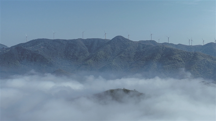 近日,裘村镇甲岙村出现了壮观美丽的一幕,只见风车公路被雾气笼罩,风车与群山在云海中若隐若现、宛如仙境。