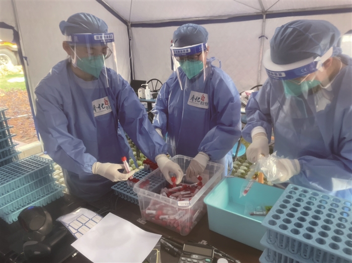 面对5月初严峻的疫情防控形势,奉化检察干警闻令而动,立即投入当地抗疫一线,负责做好接收全区各镇(街道)送过来的核酸样本,并协助做好扫码、核对,做好转运工作。检察干警化身“志愿蓝”“志愿白”,与医务人员、社区工作者一起奋战在抗疫一线,让“检察蓝”成为筑牢群防群控的坚固防线的一部分。