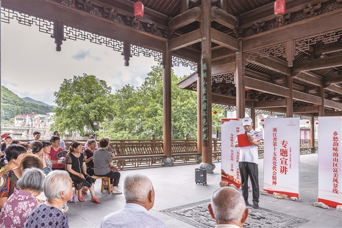 日前,大堰镇举行省第十五次党代会精神宣讲暨“堰领绿行·红动七月”主题月活动启动,党员干部在大堰村廊桥和群众一起开展“逐绿连山·酵冠自然”生态农法手作体验活动,认真宣讲省党代会精神。