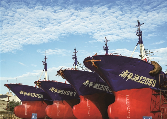 随着东海全面开渔季临近,连日来,莼湖街道栖凤双山船厂的渔船为即将奔赴东海海域开展捕捞作业做好准备。目前已装饰一新、整装待发。
