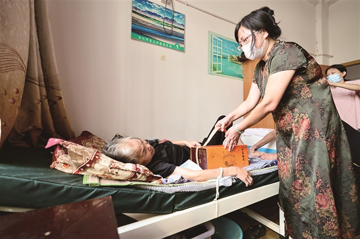 在普天乐健康乐园里,慰问团一行与残疾人、老人亲切交谈,详细询问他们的日常生活情况和健康状况,为他们送去月饼等慰问品,并嘱咐他们天气转凉,注意适时添衣保暖。